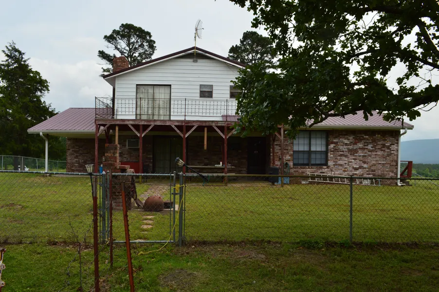 Ranch House: The ranch house is located on a hilltop setting which provides a breath taking panoramic view of the mighty Kiamichi Mountain Range to the South, Carver Mountain to the North and Simmons Mountain to the East. The ranch house was constructed in 1985 and contains approximately 2418 square feet of heated and cooled living space with 4 bedrooms, 2-1/2 bathrooms, 2 living rooms, kitchen, formal dining room, utility room and basement. The exterior walls of the home are covered with brick and vinyl siding. The roof is covered with 26 gauge metal roofing. The home has two wood fireplaces and also has a propane heat source. All household furniture and appliances are included in the list price except for two bedroom suits and the living room furniture.