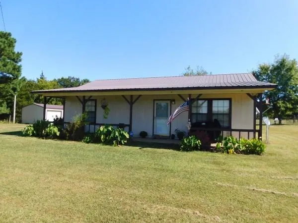 HOME: This home has Masonite siding and a metal roof which makes it very low maintenance and energy efficient. The covered front porch extends the entire front length of the home and gives it the country charm and feel. All electric with central heat and air. Huge pine and shade trees in the yard.