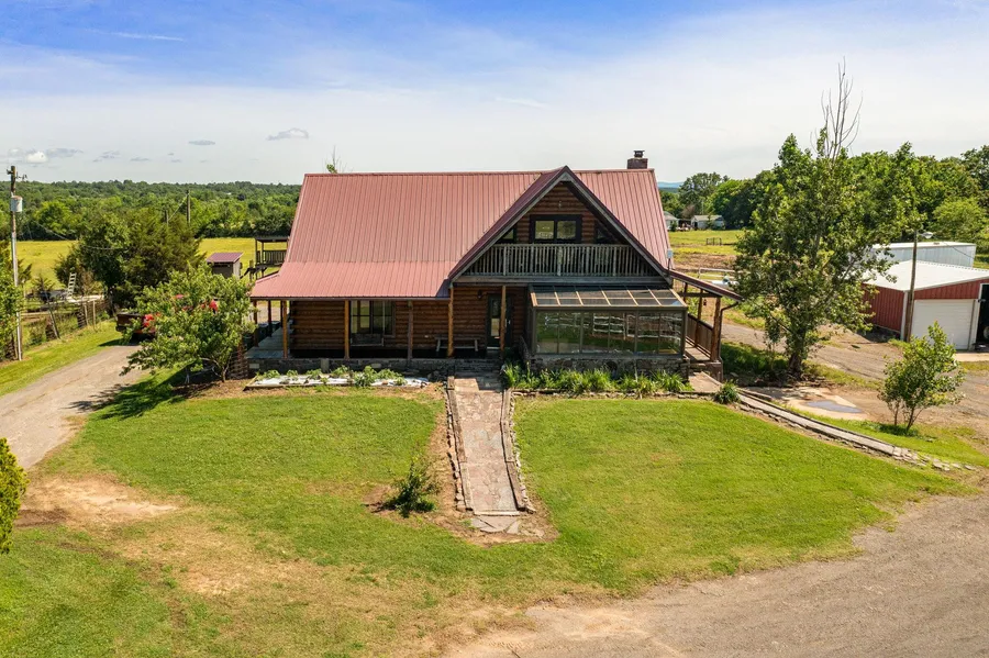 This custom built Satler White Log Home is 2645 sq ft heated and cooled with 4100 sq ft total, with porches and carport. The home sits on a beautiful 16 acres, fully fenced, and cross fenced with incredible views of Cavanal Hill.