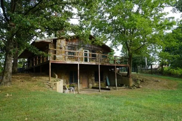 Home: The two level rock home was built in 1989 according to the county records. The rock exterior fits the setting great along with its newer metal roof. Its a two level home with 2 bedrooms and 1 bathroom, kitchen, living room and nice elevated wooden deck. The bottom level has 1 bedroom, a full bath, combo kitchen and living area, as well as a cement storm shelter room. It has a central hvac system, along with a super efficient pellet stove for heating upstairs and fireplace down stairs. This area was used for a mother in law suite. See room sizes below: