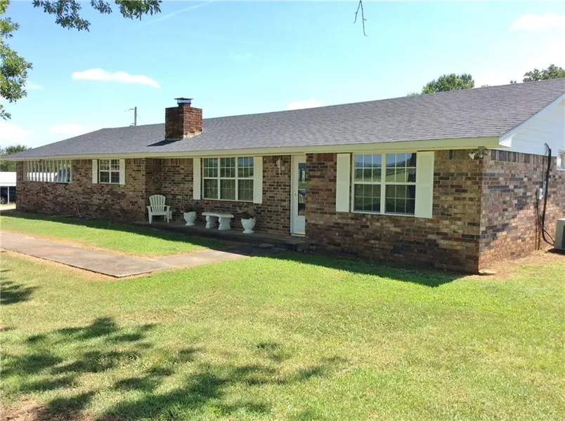 Enjoy this well maintained home with scenic views, 3 bedrooms, 2 full baths, split floor plan, spacious living room, fireplace, vinyl double-pane windows, and a new architectural shingled roof. The 40 acres m/l is fully fenced and cross fenced with a section fenced for goats. Two nice ponds for your livestock and to do a little fishing to relax. There are also two barns (one with electric), a garden shed with a roll top door with electric, a storm cellar, and a water well available for your garden.