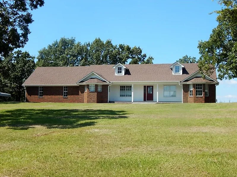 Brick home on 2.50 ac of land with nice view from back deck/patio. Home has large kitchen/ding area, sunroom, 2 bedrooms, 2 baths, office/study that can be utilized as 3rd bedroom, living room with built in bookcases, French doors. Large laundry room with 1/2 bath adjacent. 2 car garage has storage area with built ins, storm shelter in garage, 2 pre-fab carport.