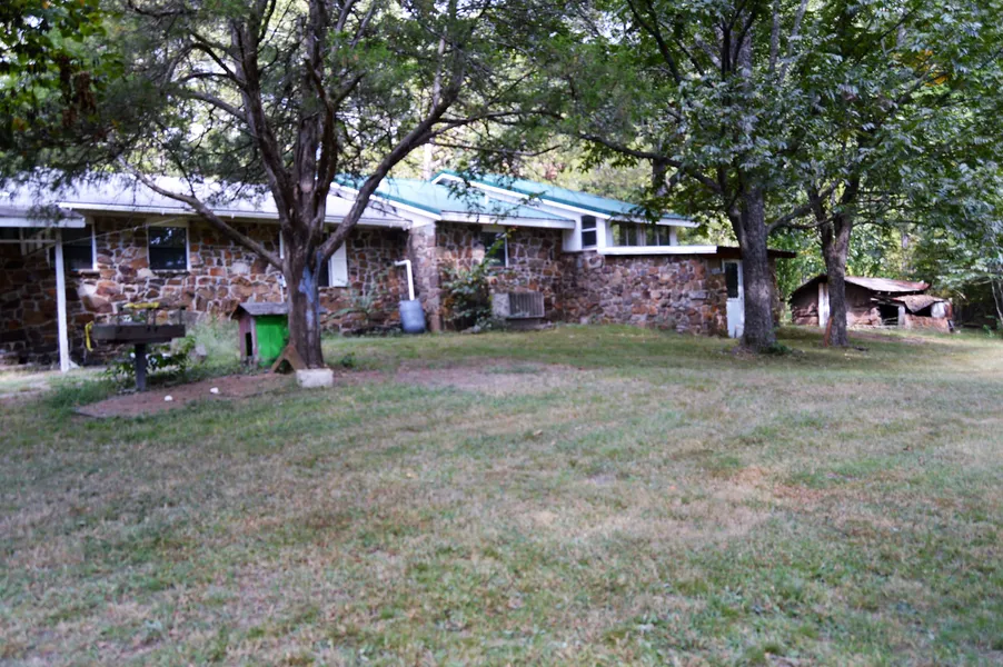 Rustic stone home sitting on 80 beautiful acres joining the National Forest on 2 sides. A mix of pasture & woods. Perfect for full time living or a weekend retreat. Three bedroom, two bath home.Fenced garden spot, storm cellar, well water, wood stoves. Metal shop with electric. Haw Creek runs thru property. 3 ponds plus small spring fed pond. Rustic 2 room hunting cabin in the woods. garden Tons of wildlife-deer, turkey. Hunting right outside your back door. Pasture fenced and ready for cattle