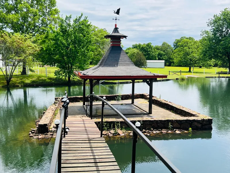 POND AND OUTDOOR SPACES: 3.56 acres with two outdoor storage buildings, gorgeous pond, and farm field views. Pond is stocked with mostly bass and has an organically arched bridge onto a stone island with wildlife surrounding you. The new owners will enjoy privacy and birds chirping from the island gazebo thats featured in the ponds center. Owner reports bass up to 7lbs and Redear Sunfish near 2 lbs. Currently there is a pair of Canadian Geese that our currently on a nest. The same pair has been coming to this pond for years to raise their ducklings. it is very clean and clear water and the entire banks are mowed and manicured .