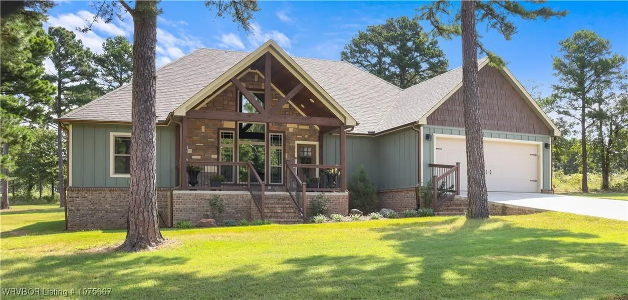This 2,210 sq ft like new custom home, located near the scenic Wolf Mountain Golf Course, offers a perfect blend of comfort and style. The property features an open floor plan, accentuated by cathedral ceilings and a cozy gas log fireplace, creating an inviting space for gatherings. The home includes three spacious bedrooms, study, and two full bathrooms, ensuring ample space for family or guests. Nestled on a generous 0.80 acre m/l, on a quiet street with a storm shelter and plenty of outdoor space for relaxation or entertaining. Pour yourself a cup of coffee and kick back on the front or back porch and enjoy the serene setting close to golfing and natural beauty.