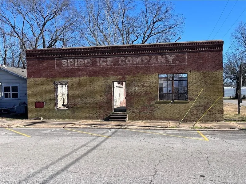 Located in the heart of downtown Spiro on Main Street, this historic property is the former Spiro Ice Company building, originally constructed in 1925. Situated on a 7,050 sq ft lot, the property features the remaining original masonry walls of the building, offering a unique opportunity to restore, repurpose, or redevelop a piece of local history.