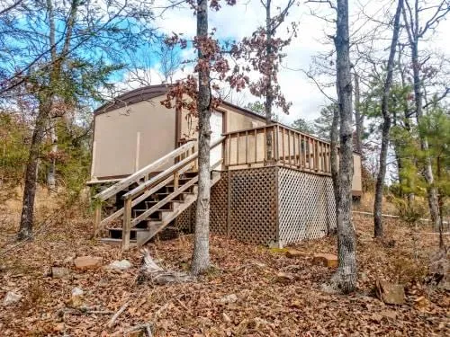 On a well maintained dirt,gravel road, surrounded by beautiful views and hardwoods sits this small cabin on 5 acres.