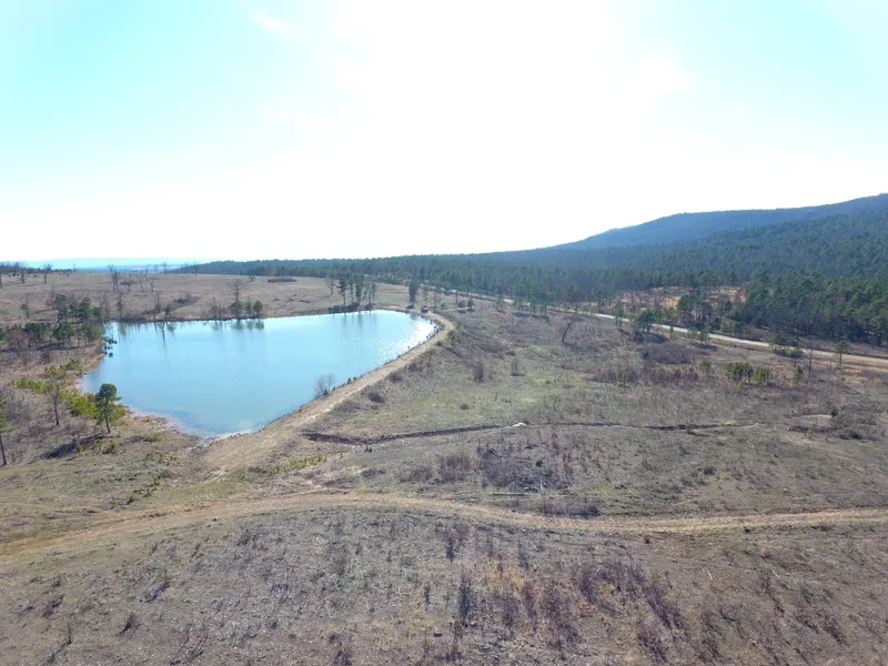 Land: There are 70 acres (m/l) of land that has varied terrain features ranging from valley pastures and meadows to densely wooded ridge-type hills laying along the western slopes of Cavanal. There is about 100 feet of elevation change across the property. About 75% of the land has recently been cleared and is currently being used for pasture for grazing livestock and the remaining 25% of the land contains timber that is native to south-eastern Oklahoma including a diverse variety of oaks, hickory, eastern red cedar, ash, hackberry as well as a nice mix of evergreen native shortleaf pine. The land has fencing around the South and West perimeter lines. From the South part of the property there is a cleared and elevated knoll setting that would be the perfect location for an off-grid home or cabin. The western property line has frontage along a county farm to market road (Ogden Mill Rd) for approximately 1,400 feet.