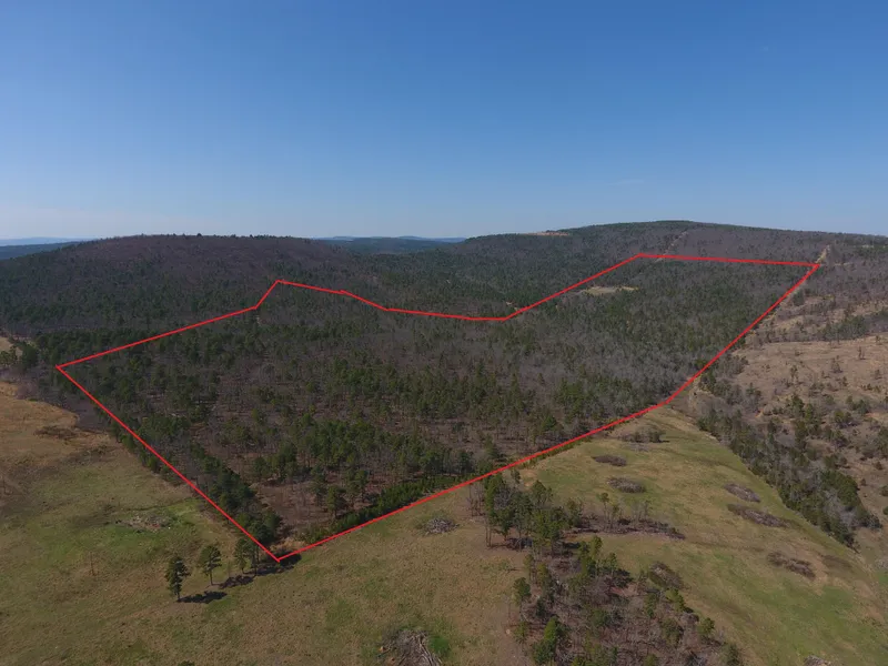 Location: This property is located just East of the crest of Round Mountain in Southeastern Oklahoma in a very remote and secluded wilderness type setting surrounded by miles of privately owned timberlands to the North and a 10,000 acre cattle ranch to the South and East. The property is about 12 miles NW of the town of Wister, Oklahoma. Wister Lake State Park is about a 16-mile drive. Tulsa, Oklahoma is about a 1.5-hour drive and Dallas, Texas is 4 hours. GPS Coordinates: 34.992167, -94.860706