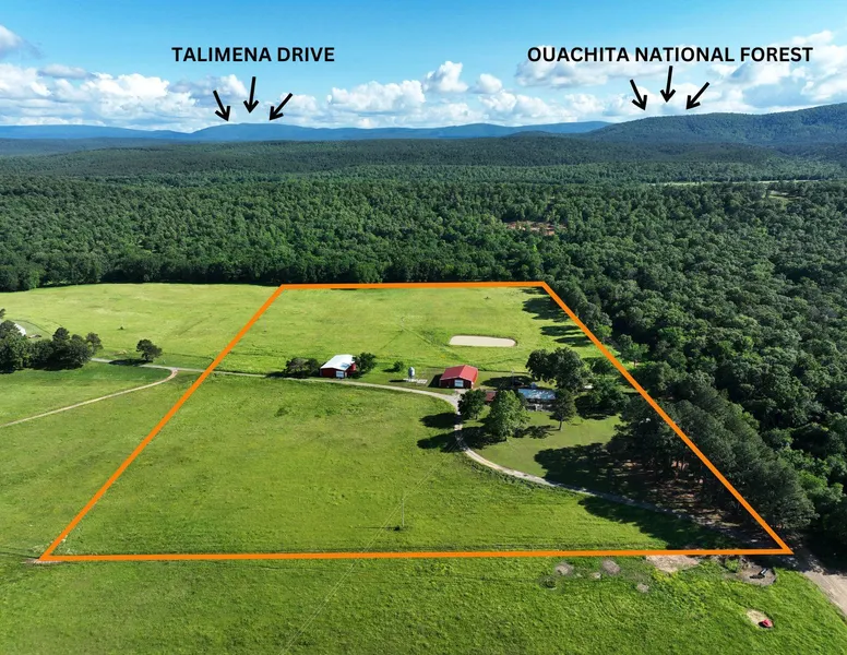 This stunning country charmer sits on 20 acres with a pond southwest of Heavener, Oklahoma, on the dead end street named Merle Branch Lane. The open pastureland in front and behind the house is fenced for your animals and provides you with amazing views of the Ouachita National Forest and Talimena Drive looking south and Cavanal and Poteau