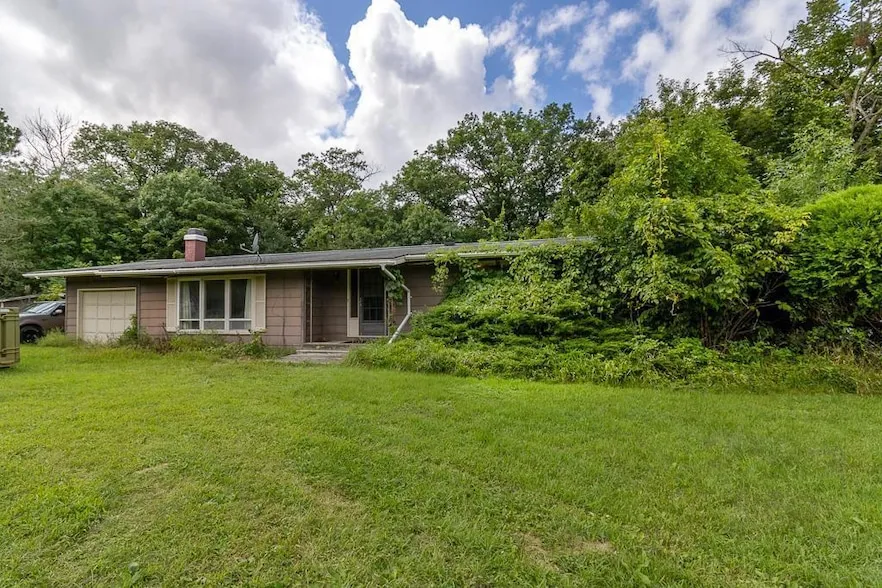 Welcome to this three-bedroom, two-bathroom home nestled on nearly three acres in a peaceful rural subdivision with a ravine lot. The main level offers three same-floor bedrooms and two bathrooms, along with a spacious kitchen and dining area that flow into the living room, highlighted by a cozy wood-burning fireplace. Large windows throughout the main floor bring in natural light. The lower level features a full, unfinished basement that offers endless possibilities whether you envision additional living space, a recreation room, or abundant storage. With its generous lot size, there is plenty of room outdoors for gardening, hobbies, or simply enjoying the quiet country setting. This home is a fixer-upper, presenting an excellent opportunity to add your own style and updates. With its solid layout and convenient location, it s ready to be transformed into the home you ve always imagined.