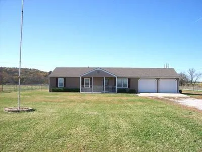 24 ACRES. Blacktop rd. Rural water. 4-stall horse barn. Loafing shed. Outdoor arena. 24x24 attached garage. Hay field. Fenced. Cross fenced. Creek with hardwood. Hunting paradise. Open floor plan.