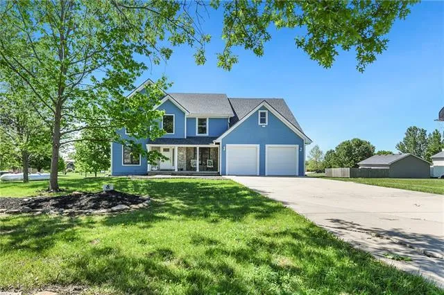 Over 3000 sq ft 2 story home on 1.22 acres +/- 4BR 3.5 BA , New Roof, remodeled hall bath, one of the bedrooms have been completely redone upstairs (waiting on new carpet to be installed by closing!). Looking for an AMAZING outbuilding? 30 x 45 Outbuilding with concrete floor and electric, 7 ft garage door , 11ft sliding barn door for parking your RV or boat or a hobby shop! Home has a walk out basement with finished family room , full bath, loads of storage and another garage underneath with garage door. Beautiful location, Lansing Schools and very close to everything KC!!