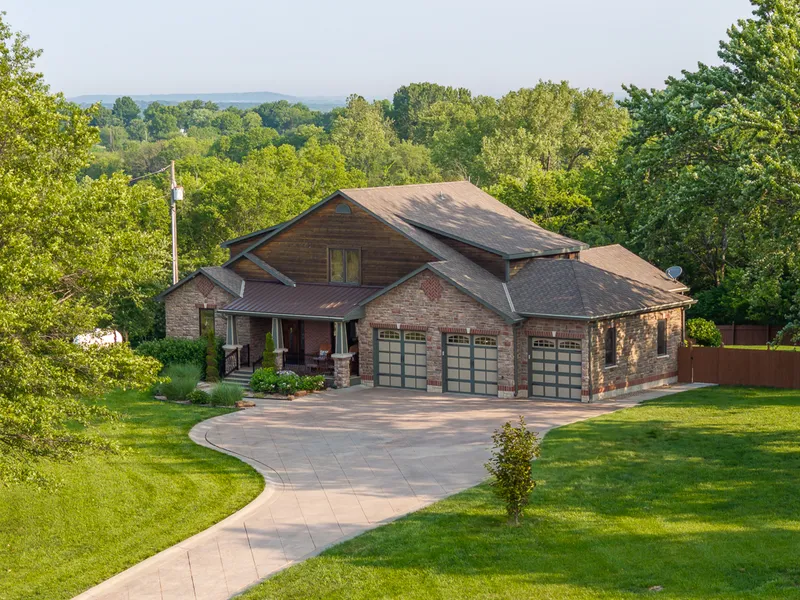 If you've been dreaming of a forever home, this custom-designed residence on a private, tranquil 2.16 +/- acre lot is sure to check all the boxes. With 4 spacious bedrooms, 3.5 baths, and a partially finished basement, this exquisite home offers the perfect blend of luxury, convenience, and comfort. Nestled at the top of a beautiful stained concrete driveway with curbs and additional parking, the residence stands proudly with a stone and cedar siding front elevation, a three-car garage, and an inviting large covered porch.