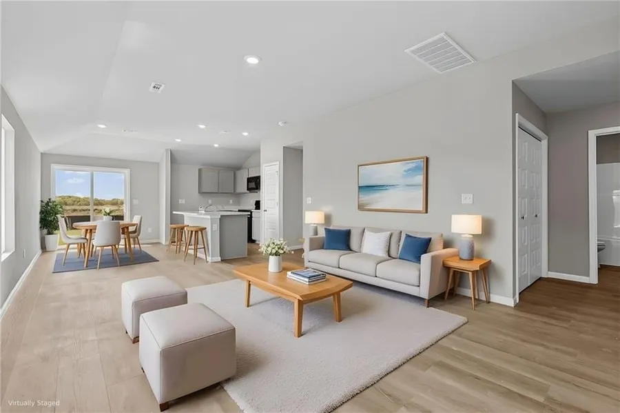 This home is under construction with an anticipated closing date in April. Photos are of a finished home in another community. Open floor plan, with LVP throughout, except bedrooms. Large primary bedroom has a HUGE walk-in closet and 60" walk in shower. 2nd and 3rd bedrooms are at the opposite end of the house. Free standing island with room for at least 3 bar stools and an adjoining dining area with room for a large table. Include the family room seating and you could potentially have up to 15 people seated. The 14x7 patio off the kitchen allows for even more room!