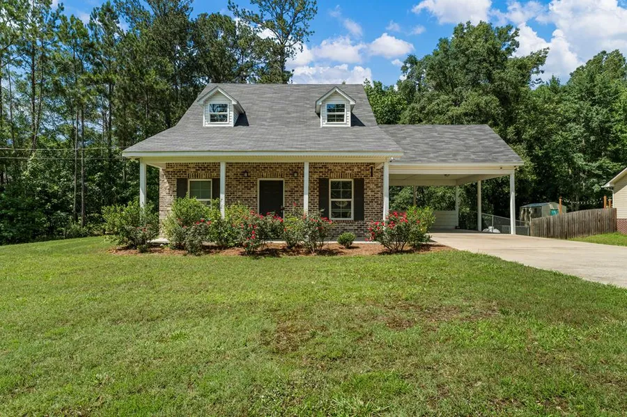 This beautiful 6-year-old brick home offers the perfect blend of modern style and comfort. With 3 bedrooms, 2.5 bathrooms, and 1,607 square feet of living space, it features a thoughtful layout designed for both functionality and relaxation. The primary suite is conveniently located on the main level for added privacy and ease. Enjoy luxury vinyl plank and tile flooring throughout the main level, while the upstairs includes carpet and tile. The spacious living area is filled with natural light and centers around a gas fireplace, creating a warm and welcoming atmosphere. The kitchen features granite countertops, like-new appliances, and generous space for cooking and entertaining. Upstairs, you'll find two additional bedrooms, a bonus area offering flexible use, a full bath, and an extra vanity for added convenience. Step outside to a covered patio, a covered fire pit area, and a fully fenced backyard, great for outdoor enjoyment. Additional features include a 2-car carport, a storage shed, a water filtration system, and a Vivint security system with cameras for added peace of mind. This move-in ready home combines comfort, style, and thoughtful design inside and out.