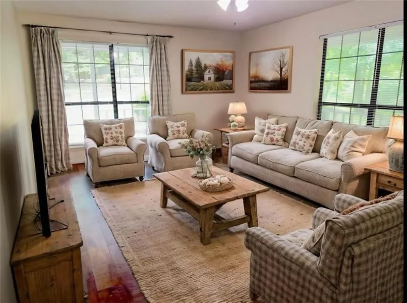Cozy 4 Bedroom 2 bath home nestled on serene 5.8 acres with glistening pond and Beautiful mature hardwood trees adorning the property,