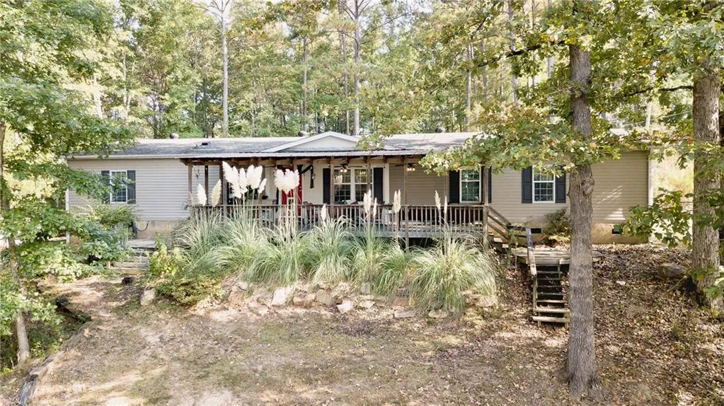 Spacious 1998 manufactured doublewide set on a 2.07-acre DEEDED lot on Lake Harding, offering both privacy and room to roam. Outdoor living is a highlight with a large covered front porch featuring three ceiling fans and steps that lead down to the backyard and dock area, which will need repair or rebuilding. Inside, the living room with laminate wood flooring flows into the eat-in kitchen, complete with island seating, walk-in pantry, stainless steel appliances, and dining space. A cozy keeping room with stone-surround wood-burning fireplace provides an additional gathering space. The split-bedroom plan offers a private primary suite with an ensuite bath that includes a soaking tub, double vanity, and insert shower. Four additional bedrooms provide flexible living options—two with Jack and Jill bath access, one oversized bedroom, and a fifth bedroom that shares the hall bath. A laundry ...