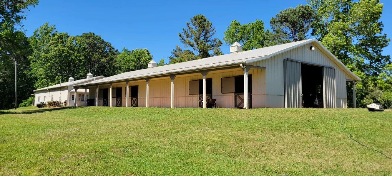 Has a 36X102 barn with 12 stalls, tack room, office, and bathroom. It has a concrete foundation. There is also a nice 3bd 3ba house that sits close to the barn with ceramic tile throughout. Utilities: Has water and power. Sewer is less than a half a mile away
