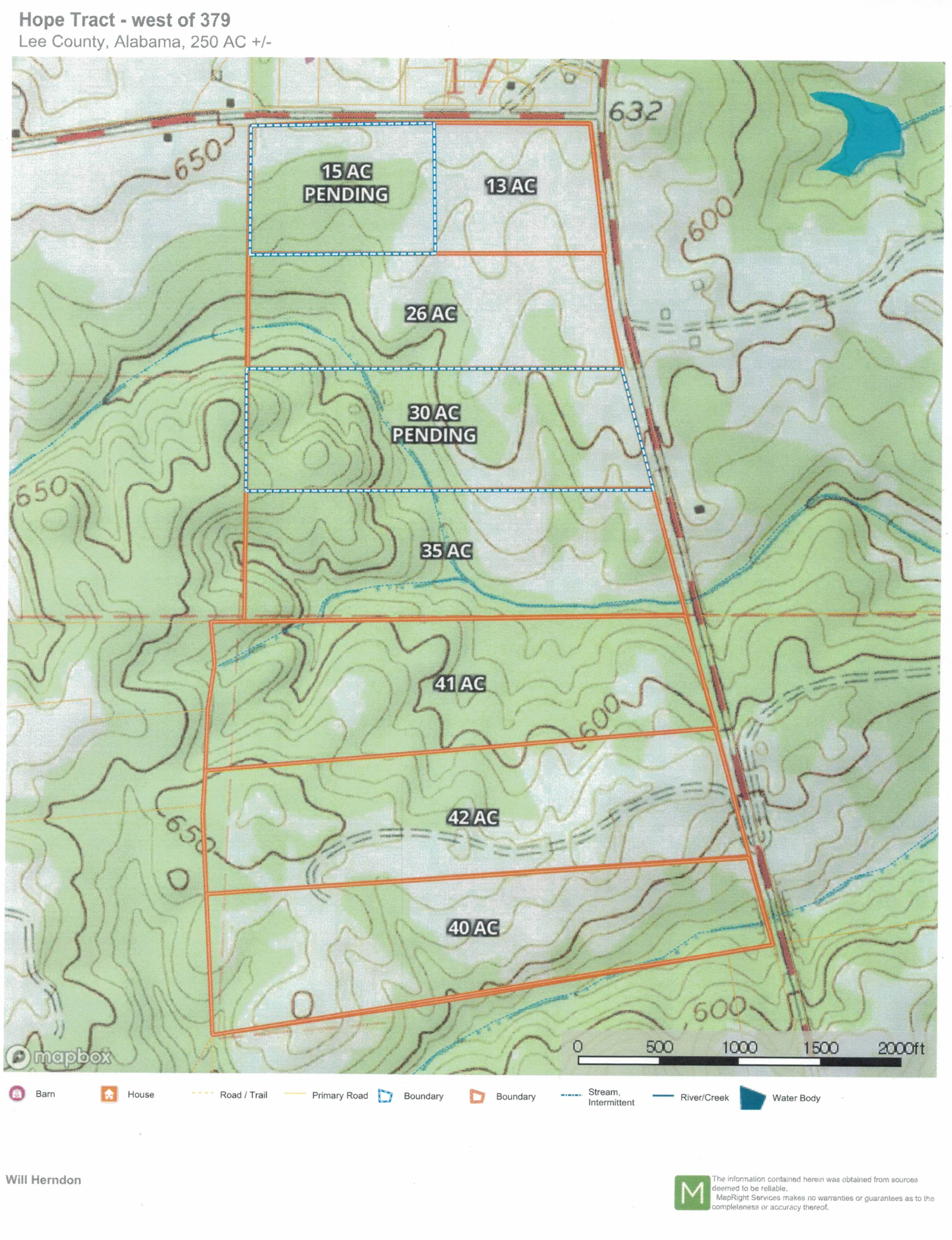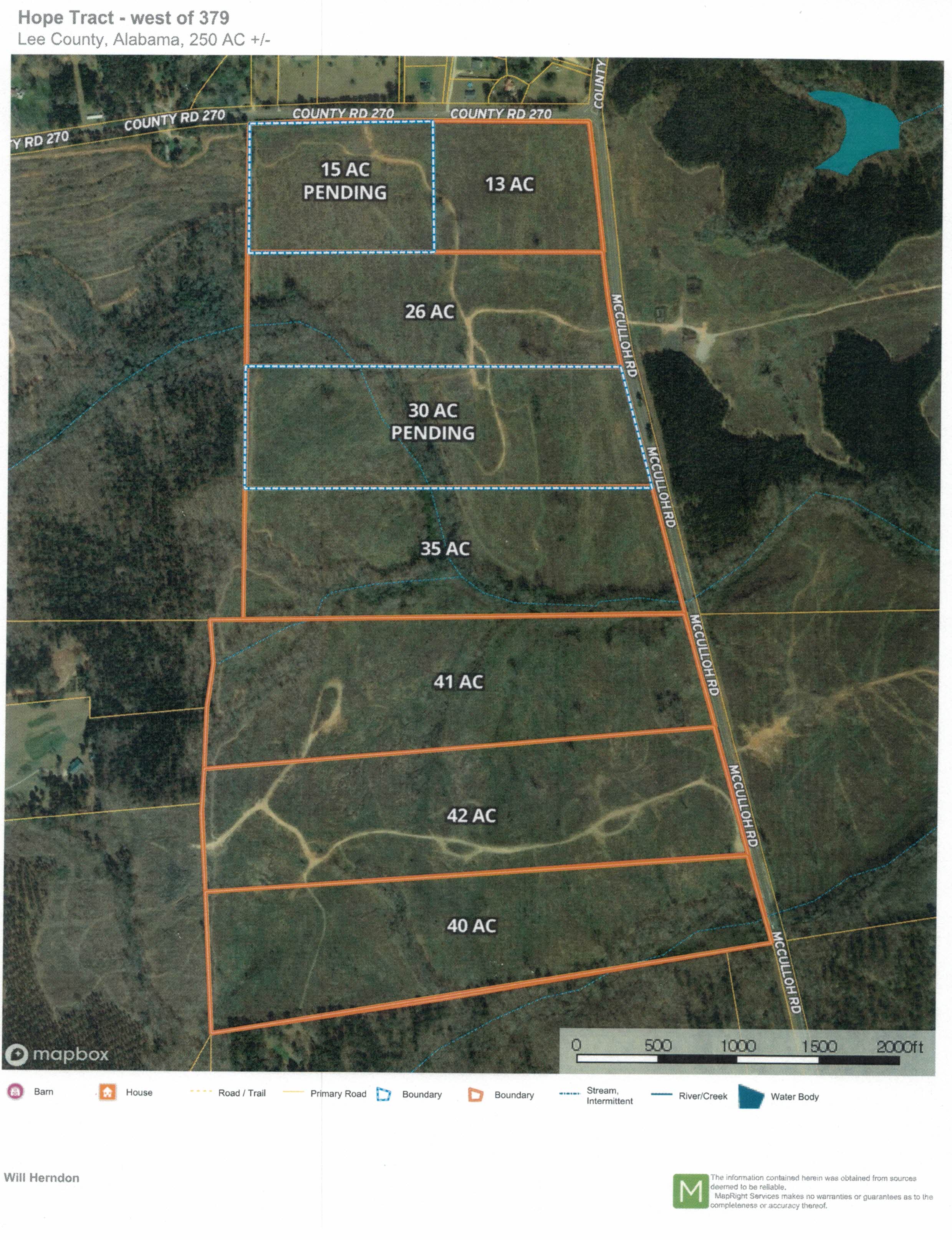 We have other tracts available in the 13 to 41 acre range. Acreage is approximate and all tracts will need to be surveyed.