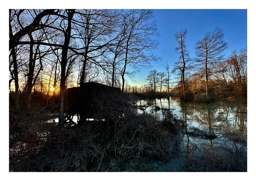 The property is in a well-known duck hunting area, directly on the Big Piney Creek duck flyway. The legendary, 600-acre, flooded timber Piney Creek Hunt Club has existed for over 70 years and is located just one mile northwest of the land. Adjacent agricultural fields and duck hunting properties within proximity are managed for ducks, which help hold concentrations of waterfowl in the area. The landscape offers a diverse duck hunting experience via the bottomland and crop fields. A sizeable permanent blind is located on Little Piney Creek. Several established shooting holes are scattered throughout the bottomland, and a remote 20-acre field on the south provides outstanding pit blind duck hunting. In addition, there are three other fields, all with pit blinds positioned in key locations. Both tracts are impounded, water-controlled, and can artificially flood to guaranteed water during duck season. The cultivated fields are ideal for converting to duck food plots for hunting and enhancing the existing duck habitat.