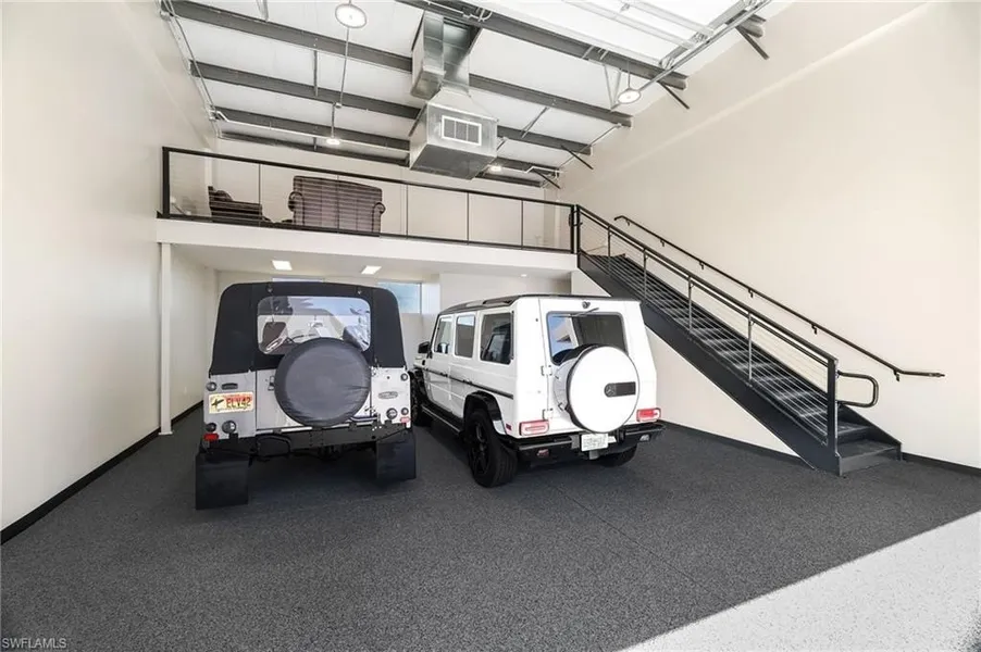 Located in a well-maintained commercial complex, this garage offers an ideal space for automotive storage, detailing, or light industrial use. The dedicated car garage is designed for efficiency, accessibility, and security. The space features high ceilings, a roll-up bay door for easy vehicle access, and durable epoxy flooring built to withstand heavy-duty use. Inside, you'll find a full bathroom with a shower for convenience, as well as a large storage closet under the stairs to keep your space organized. The mezzanine upstairs is a standout feature, plumbed for a kitchen or bar area, providing endless possibilities for customization or creating a comfortable workspace. Well-lit and equipped with electrical hookups to support a variety of needs, the garage is perfect for car storage, auto detailing, or small-scale automotive operations. With 24/7 availability, this garage offers flexibility and convenience in a prime location. Whether you're a car enthusiast, a collector, or a growing business in need of functional space, this opportunity is a rare find. Contact us today to schedule a private showing or request more information about this unique garage space.
