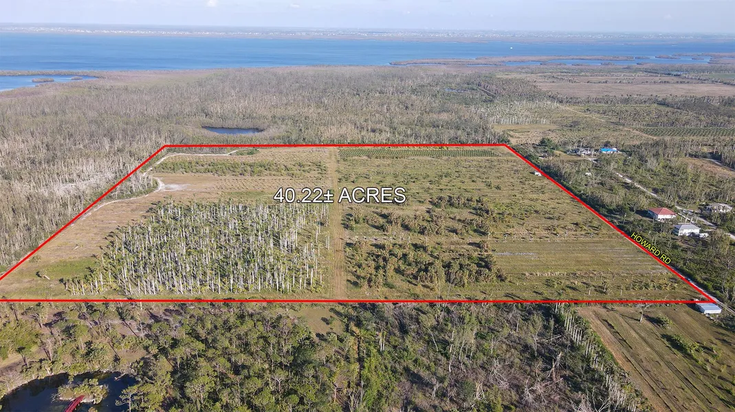 The farm is located on the north side of Howard Road on the northern end of Pine Island in unincorporated Lee County. It's 0.75 miles east of Stringfellow Road, 6.5 miles from Pine Island Center, and 12 miles from Cape Coral. The surrounding area is a mixture of farmland, woods, and a few single-family homes.