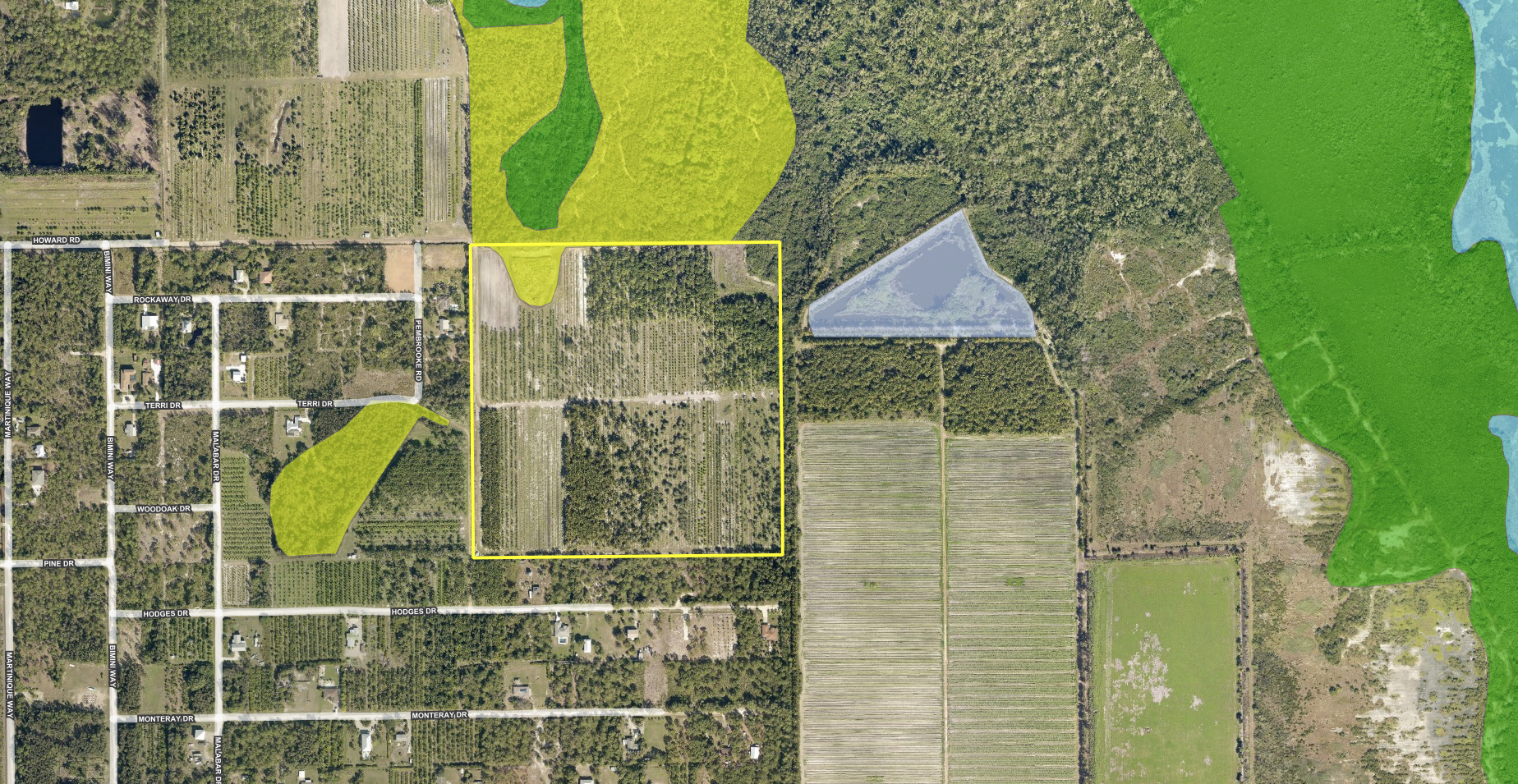 The farm has a 4" well and is mostly high and dry. Soils consist primarily of Immokalee and Myakka.