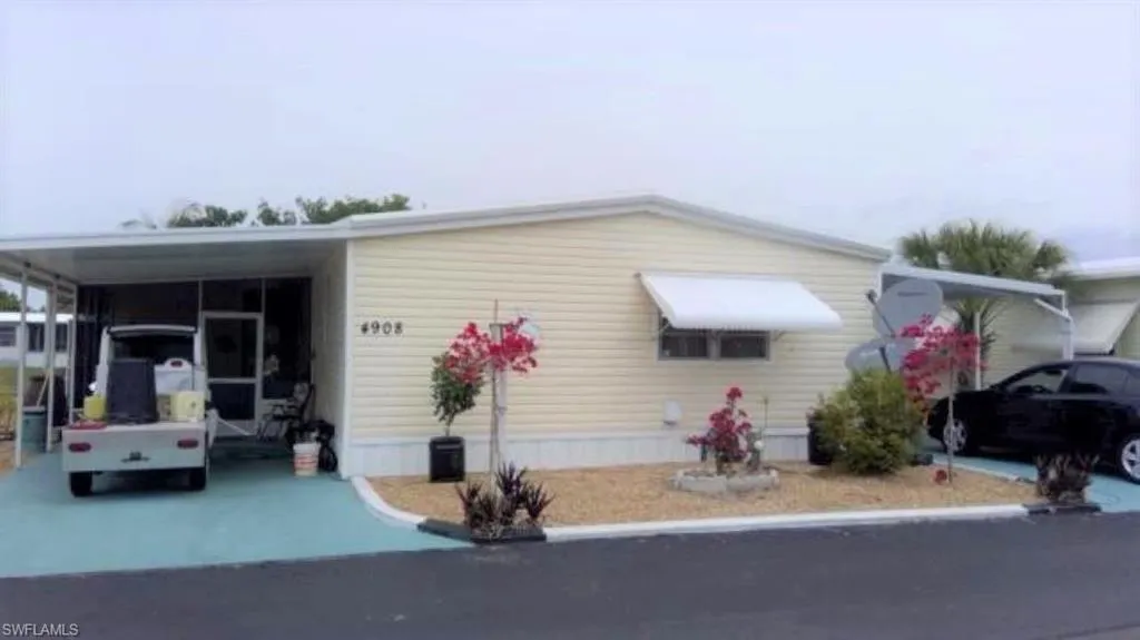 GULF ACCESS direct in beautiful Pine Island Cove 55+ community where you own this 2/2 home and land. This home has two separate driveways/carport for extra parking. Large family room and screen lanai for entertaining or just watch the beautiful sun set. Community heated pool, spa, picnic area with grills, dog park, RV & boat storage, private boat ramp in community, lot of activities for everyone. Boat lift, dock and just a few minutes out to the Gulf of Mexico to some of the best fishing in SW Florida, or take a boat ride to Sanibel, Cayo Costa to the beach. Close to restaurants, markets, banks, bike trail, parks.