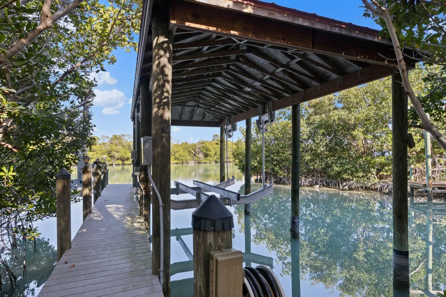 This island home is so pristine in its refinement of the classic coastal style that it has been featured in interior design blogs and home decor publications. Each room embodies the idea of the perfect day in Florida seamlessly blending timeless taste with functional practicality. Situated on the bay side of Captiva Island is an opportunity to live steps from the beach with your boat in the protected basin that is just a shell path away from your home. Built on a natural inlet the home's boat basin provides a multitude of options for the saltwater enthusiast including a priceless boathouse (a luxury no longer permitted for new construction), boat dock with 20K lb lift, jet ski lift, and natural shoreline for launching kayaks/paddleboards. The tropical vegetation surrounding the home enhances the resort-like ambiance of the property. The slightly elevated pool was designed to embrace the natural surroundings creating a private haven for tranquil enjoyment or memorable entertaining.