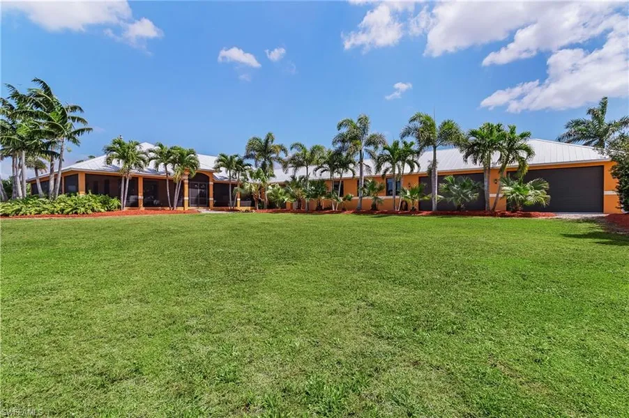 Estate home on 9.8 acres with a producing and marketable tropical PALM GROVE. at the North end of Pine Island . The beautifully landscaped Private Driveway and Gate enters into this tropical paradise.. Full hook-up RV parking spot with 50 amp, city water and septic pump, 4- carport spots - 4 car garage and large work-out bonus room with central AC and Hobby room all attached to the Large Florida CBS home with wraparound screened porch & Huge Spa... Enter the beautiful tiled floor foyer, and the living area with attached Den and 1/2 bath and the fabulous views of the manicured landscaping, large pond and fountain gazebo. Large Kitchen is perfect for the Chef & family, Wolf propane cooktop with stainless steel Wolf downdraft, Stainless Refrigerator/dishwasher & compactor and a walk-in pantry. Large Master Suite also leads to the Den, Master Bath & shower is to die for His & Hers closet has...