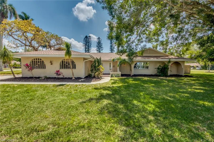 Beautifully remodeled 2000+ Square foot 2+den/2 (can easily be converted to a 3/2) pool home on a corner lot that is just under .40 acres.The front lot line is lined with 60' Royal Palm trees with a huge banyan tree that is absolutely breathe taking.Across the street from magnificent river front homes on the Caloosahatchee.You can still enjoy the view of the water from your living room window and front yard.This open floor plan has a ton of upgrades,New roof 2020, Freshly painted, New hardware, doors, baseboards Tile through out Updated White shaker Kitchen Cabinets with LED Lighting,Granite Counter tops with a lighting under the peninsula,Glass tile backsplash and a huge pantry closet.Bathrooms have new toilets vanities fixtures windows, and tile.Enjoy the 65' Flat screen TV that is mounted to the shiplap wall that comes with the house and New windows in the living room. The living room glass sliders look out to your in-ground pool and lanai with new vacuum system that keeps the water crystal clear.Master bedroom looks out at the pool with sliders and has a barn door to your closet that opens up into your gorgeous updated bathroom with tons of storage.Within minutes to Downtown