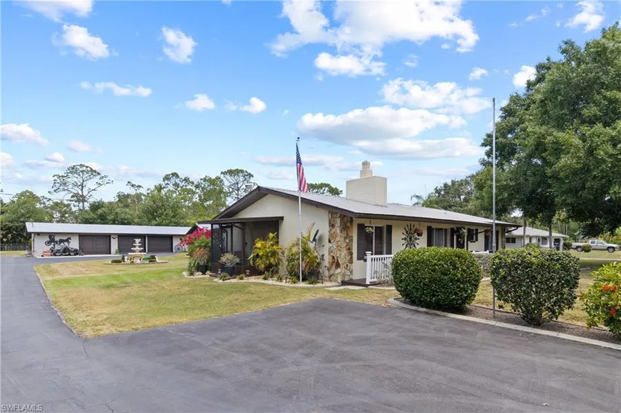 This truly is country living! This 2/2 home has been meticulously cared for and owner loved. The home has an additional living space with it's own entry that could easily be a 3rd bedroom. The kitchen has granite counters and updated cabinets, there is also waterproof wood laminate flooring, a formal dining room and sizeable bedrooms along with a wood burning fireplace. You must see the expansive master bath that also doubles as a pool bath. Additionally, the home has a metal roof and is solar powered- a huge savings on the electric bill. The oversized pool has a stamped concrete deck and an outdoor kitchen with a gas grill and sink. This loved home really is just the beginning- from the moment you pull into the extended driveway, you see the charm of this home and property. There is plenty of room for all your toys here. You must see the 5 stall garage, pool pavilion and garden shed- all with a metal roof. Park your boat or RV in the covered port. Spend your days outside in the warm sunshine swimming in the pool, grilling under the pavilion, playing in your garden or chasing the kids or pets. Live the country life without being too far away- located just off of Bayshore and I-75.