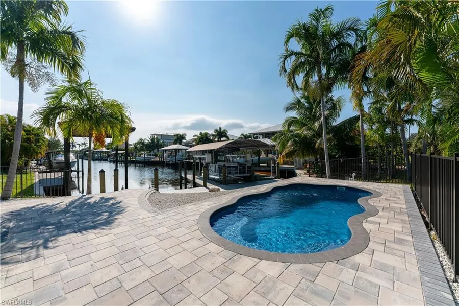 It's all about the Water, Deep, Direct, Sailboat Access minutes away from Pine Island Sound & the Intercoastal waterway allowing for easy navigation to the famous beaches of Sanibel, Captiva, Cayo Costa & Boca Grande not to mention some of the worlds best fishing too. This homes features two residences in one. The Main House features just over 1000 square feet of living space w/ 2 bedrooms & 2 baths w/ a Full Kitchen & breakfast bar, Dining Area w/ sliders that access the newly built screened in lanai & pool area. The Master Suite features a Private Bath a& walk in closet. The private guest quarters offer approximately 400 additional square feet of living space w/ a bedroom, a full bath, complete Kitchen & living area. Enjoy privacy in your outdoor sanctuary w/ a brand new waterfront saltwater heated pool complete in 2021, screened in lanai 2021, new boat lift w/ cover, composite capta...