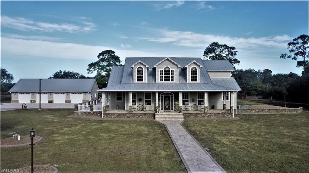 Stunning turn key equestrian property on almost 16 acres now available for the first time since its custom build in 2004.Classic 2 story farmhouse home sits nestled within the pines. Home offers just under 3,000 sq ft if spacious living area with 5 full bedrooms and 2.5 bathrooms. Large master suite on the main floor includes a full washer and dryer inside its master closet for convenience. Full wash room additionally located near the kitchen for larger cleaning tasks with plenty of custom cabinetry for storage and wash tub. Enjoy sitting by the fireplace in the living room overlooking the massive outdoor are alongside the gazebo and pool.Gazebo has a fully stocked kitchen and bath for entertaining. Custom kitchen with plenty of cabintry and a window over the sink to enjoy the view of the barn. Barn features 5 12x12 stalls with rear paddocks and wash areas. Need a space for your larger toys and want to house them in something other than the 4 car garage? Head over to the pole barn and keep them all safe from the Florida weather. Property is fenced and has 7 paddocks throughout. This home has created memories since 2004 and is set to creat even more for years to come.