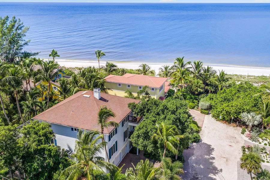 Island living is at its finest from this uniquely charming and stunningly updated home at the end of Captiva's Wightman Lane. The unique design was thoughtfully conceived to maximize the views of the Gulf and sunsets, which can be enjoyed from the main areas and both large lanais, which are on the top floor. A warm stone fireplace greets you, and stunning wood floors lead you to the large, updated kitchen perfect for entertaining or preparing a delicious meal and past the elevator to the inviting living room. Vaulted ceilings add to the ambiance, and opening the sliding glass doors will bring in the sound of the surf. The second floor has all new wood flooring and features another living room, guest bedrooms and a large master bedroom down the private hall. The master bath has just been gorgeously remodeled with an eye for comfortable luxury. The stunning grotto-style pool and hot tub ar...
