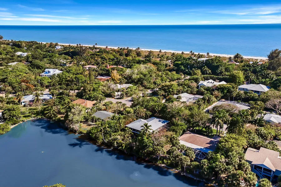 Near the end of West Gulf Drive, past the resort housing district where the beaches are less frequented except for the occasional island neighbor searching for shells, sits an elevated beach cottage with a large porch and stacking slider doors that entice you to take time and enjoy the natural landscape just outside your door. The long lake views ensure the utmost privacy as you spend time enjoying your tropical gardens or relaxing by your screen-enclosed pool. The open floor plan and large deck extend the entire length of the home, which borders the lake, offering an efficient functionality that makes the home live larger than a typical beach house of this size. The updated kitchen has high-quality stainless steel appliances, including an LP gas range with double ovens and a spacious four-door refrigerator perfect for the family who loves to cook at home. Other features include a lifeti...