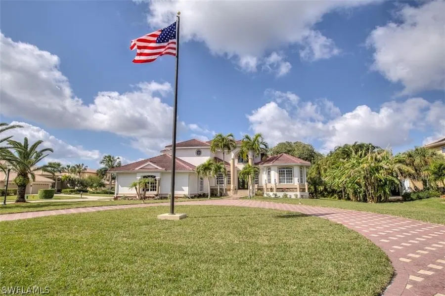 Imagine living in the prestigious & luxurious meticulously maintained gated community of DEVONWOOD on a corner acre home site. This gem is just minutes away from the airport, beaches, shopping & dining. This 6500+ SF estate offers 3 over sized garage spaces & AND 2 RV garage with self sustained living quarters, it boasts a grand entrance with a soaring ceiling overlooking the over-sized pool & raised spa, travertine flooring, a dream kitchen, double doors leading to a HUGE MASTER and a spacious bath with a bidet, A jetted Roman tub and dual WALK-THRU SHOWER! Three of the five bedrooms in the home have their own private bathroom; 2 of which are on the 1st floor including the master suite. The other 2 large bedrooms share a Jack and Jill bathroom. Completely separate in law suite is located right next store. The community boat ramp and storage area can be used to store boats, boat trailers, RV's, etc. The boat ramp gives access to Hendry Creek which leads out to the gulf. Don't miss out on this piece of paradise.