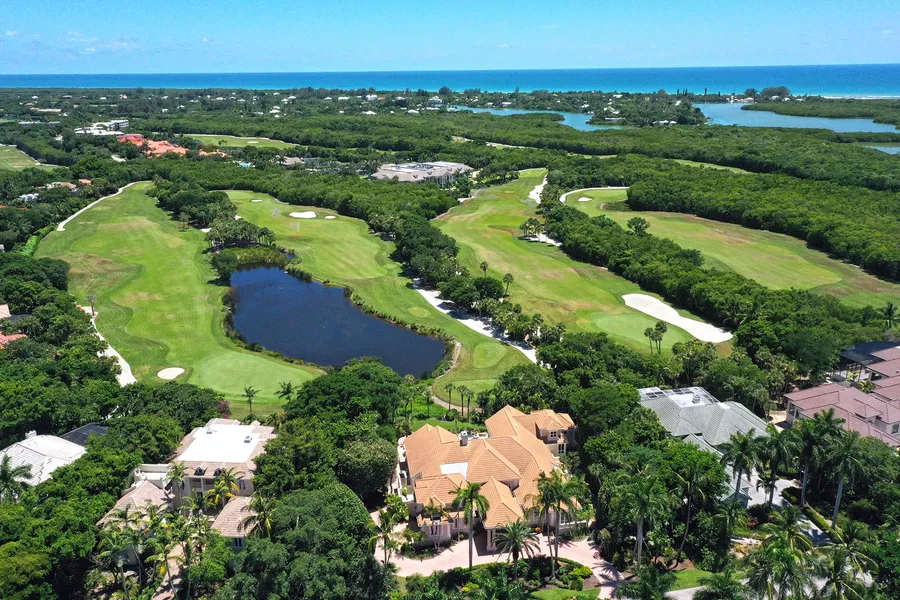 Look no further! Welcome to the world-renowned Sanctuary golf community. From the moment you pull into the porte-cochere, you know you've arrived to paradise. This grand entry invites you into the formal living area that opens to the luxurious pool area that offers a spa, cascading fountain, in-pool dining table, several deck areas and an outdoor kitchen area that offers unobstructed views of the lake, and the second and third fairway. The spacious kitchen leads to the large family room and is adjacent to the recreation room. The master suite is on the main level featuring a private balcony, walk-in closet, large soaking tub and dual vanities. Additionally, there are two bedrooms on the main level and three on the second level, all of which are en suites. The formal dining room and the den both offer French doors that lead to a courtyard setting. The lush landscape and sweeping views complete this one-of-a-kind offering. Welcome home!