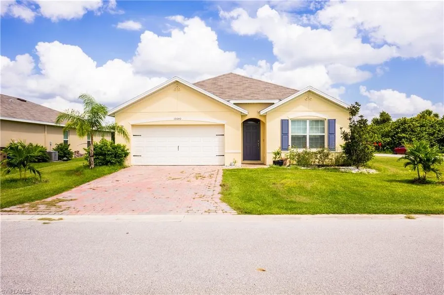 Situated on a corner lot this Beautifully maintained home in Marblebrook at Caloosa Lakes is ready for it's new owner! This property offers 4 bedrooms, 2 baths with over 1800 sqft of living space & 2 car garage. Western exposure gives you lots of natural light that guides you through the home to the large family room with loads of entertaining space! Enjoy the large kitchen with large center island breakfast bar, walk-in pantry, wood cabinets, quartz countertops w/ mosaic backsplash and stainless steel appliance package. Main living spaces have ceramic tile flooring for easy maintenance. Bedrooms have newer carpets for comfort. The open lanai leads you to a large yard with endless opportunities to add a pool, privacy hedge or landscaping and fence to suit your needs for years to come. Caloosa Lakes has extremely affordable HOA fees and is conveniently situated in a great location! Minute...