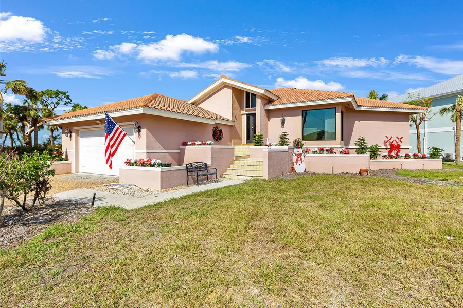 This partially elevated home offers stunning views of multiple golf holes and multiple lakes over the large private pool. The Beachview community offers the unique attributes of being part of an island golf and tennis community while also being within walking distance of Sanibel's famous beaches. Vaulted ceiling and beautiful tile floors throughout the living area add to the appeal of this home. The home was damaged by Hurricane Ian but did not incur as much water intrusion as some due to the partially elevated living areas. The home has been remediated by Island Homes, and new drywall has been installed. The home is located near the front of the community, making the walk to the Sanibel Island Golf Club, tennis courts and beach access much more convenient. This is a great opportunity to own a wonderful beach and golf course pool home on Sanibel Island.