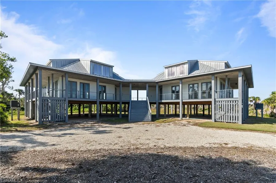 Sanibel Island living! STEPS TO THE BEACH & 1.8 gorgeous unspoiled acres! SPACIOUS 2-FAMILY, MULTI-GENERATIONAL 5 BEDROOM, 5 BATH, LUCRATIVE VACATION RENTAL INCOME POSSIBILITIES (COULD GENERATE UP TO $150,000 YR.). Home is surrounded by 1000'S OF ACRES OF NATURE PRESERVE , THE SANIBEL RIVER, & BEACH IS A SHORT WALK. Peaceful, quiet & serene location on a cul-de-sac. DESIGNED AS 2 COMPLETELY SEPARATE LIVING AREAS BUT ATTACHED FOR CONVENIENCE, each with their own private entrance, full kitchen, & great room. Perfect for a large family, two family shared ownership or multi-generational family! THE UNIQUE "OLDE FLORIDA" ISLAND STILT HOME DESIGNED architecture, ELEVATES & PROTECTS THE HOME FROM STORM SURGE & gives a timeless island feel. Lots of glass MAKES HOME LIGHT-BRIGHT-SUNNY ALL YEAR ROUND. Multiple French doors lead out to a wrap-around balcony, for true indoor/outdoor living. "CHEFS" KITCHENS both feature quartz countertops, large center island & open concept. THIS IS A ONE-OF-KIND HOME & REALLY NEEDS TO BE SEEN! THERE IS NOTHING LIKE THIS HOME ON THE ISLANDS. HOME COMES W/ONE YEAR COMPLETE HOME WARRANTY.