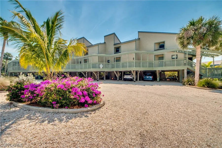 Great Views Of Jug Creek ( Back Bay) Pool & Tennis. Step in the front door ' Beautiful Tropical colors, tropical furniture & design and Views of Jug Creek (the Back Bay) PLUS A BOAT DOCK .. 40 years I've sold units at Bocilla Island Club, This is my first time in F building.. It has fantastic Views and is furnished so well...I love it and I want to keep coming back... Kitchen, dining, living, utility & 1/2 bath with porch area on 1st floor. Second floor has two master bedrooms, one for the Owner with double sinks and shower and the second has tub & Shower combo. Two parking spots under building with storage for bikes and fishing/boating equipment. There is a DOCK AND SLIP, "E" that goes with the sale !! There are 2-pools, tennis courts, Ship's store and gas, Pier on Charlotte Harbor, lush tropical foliage... you would think you were in Key West, but even better you're on Pine Island.. Vi...