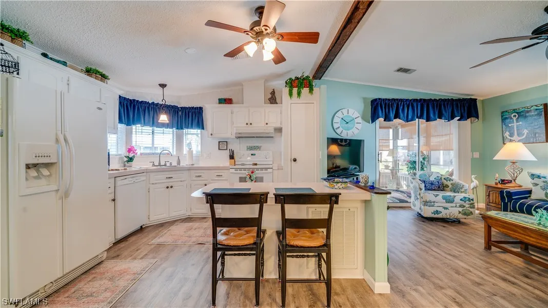 SELLER FINANCING AVAILABLE WITH ACCEPTABLE OFFER & REASONABLE DOWN PAYMENT. Roof - 2023 | Carport - 2023 | Thermo Pane Windows (Guest Room - 2023) | Door & Storm Door - 2022 | Driveway - 2021 | LVT Flooring & Baseboards Throughout - 2021 | Repiped - 2020 | Brick Pavers - 2018 | Trane AC - 2017 with New Trane Evaporator Coil & Filter Dryer - 2024 | Extended AC'd Shed with Workshop, Much Storage, New Window - 2016 | New Blinds Throughout - 2017 | Sunsetter Lighted Retractable Awning - 2020! Shares valued at $75K included in the sale. HOA fees - $288 month. With 3 exterior living areas, and a beautiful front lanai (additional 120 SF), there is much room to enjoy the Florida lifestyle. Don't Let 862 SF Deceive You! Additional Space Abounds! This fully furnished home is a "must-see". So much outdoor living space provided in this "pet friendly" home. This 2 bed | 2 bath home has been totally remodeled and is move in ready. | Fresh Interior Paint & Door Knobs | Wonderful Interior & Exterior Furnishings. If you are looking for a large backyard providing peace and solitude, in an active and welcoming community exuding the feel and comfort of an established neighborhood, you've found it! Horizon Village is a well-kept 55+ community in North Ft. Myers convenient to beaches, shopping, restaurants, etc. NO FLOOD ZONE. METICULOUSLY MAINTAINED.