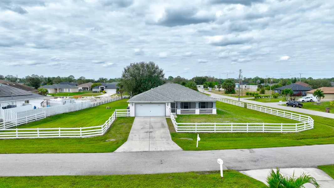 Stunning home with a huge and expansive fenced in double lot. UNIQUE 3/2 with a den and a POOL! Lots of upgrades; updated quartz countertops 2024, cabinets in kitchen and bathroom countertops 2024, newer roof 2022, new AC installed 2018, well pump 2018, garage door opener 2020, water heater 2022, and newer pool pump 2022. This home has so much to offer with stainless steel appliances, French doors that lead into the media room (or great for an office), drop in sink in the kitchen and beautiful screened in front porch AND in the back lanai that overlooks the pool and great landscaping! Did I mention location? The best! Close to Ft Myers and close to shopping and schools. This is a great opportunity to make this renovated home with a pool your home!