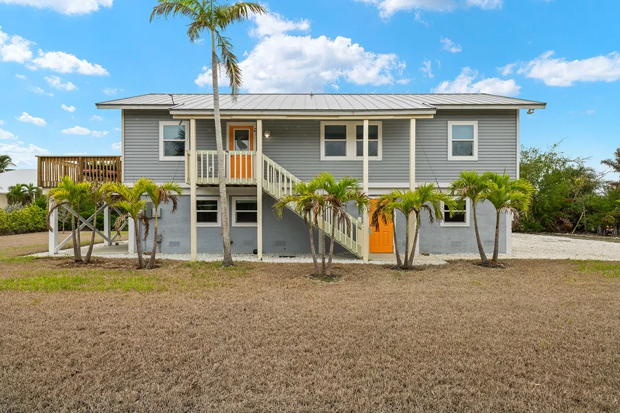 Opportunity abounds with this centrally located property nestled on Sanibel Island. The home has been remodeled in the last few years, featuring modern updates and fresh finishes throughout. Features include bamboo wood and tile floors, soapstone counters in the kitchen and quartz in the bathrooms, and stainless steel appliances highlighted with a six-burner gas range with double oven. The volume ceilings with multiple windows offer a natural lighted living area open to the large deck overlooking the back yard. This expansive property boasts over a third of an acre, offering space for a boat or RV. The enclosed ground level area offers plenty of room for additional storage or a recreation area also open to the large yard. The structure is resilient with standing seam metal roof (2023) and impact doors and windows throughout. With its upgraded interiors and ideal location near the beach, this home is perfect for enjoying the best of island living. Attractive property close to the beach and shopping and great for families or as a vacation escape!