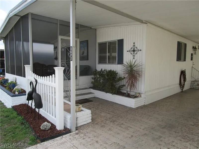 You Own The Land with this charming 2 bedroom, 2 bath home and it comes with a Park certificate valued at $11,500 that lowers the monthly maintenance fee to $214. This well-maintained home boasts numerous upgrades, including a new water heater, stainless steel LG refrigerator, Dyson vacuum, and new vapor barrier installed in 2024. The home also features all new subfloors with laminate flooring and carpet, custom kitchen cabinets with soft close drawers, a BOSCH stainless steel dishwasher, LG stainless steel oven, and Whirlpool microwave with exhaust fan. Both bathrooms have been updated with new vanity/sink, toilets, and exhaust fans. The home is being sold fully furnished with all furniture, kitchen wares, and more included. The master bedroom includes a king-size bed with a 7-piece set, while the guest bedroom has twin beds. The dining room features a Tommy Bahama style table with four chairs, a buffet, and other similar pieces of furniture. Other items included are a Broyhill couch, leather recliner, swivel rocker, two color TVs, modem, router, DVD player, custom window coverings, oil paintings, and artwork. Additionally, the home comes with a washer, dryer in the shed, bicycle, tricycle, and miscellaneous tools. The carport has space for two cars, and the northern facing screened front porch provides a comfortable place to socialize without the glare of the sun all day. The home is conveniently located in Phase 2 and a short walking distance to the pool and clubhouse. Tamiami Village is a 55+ pet-friendly community that offers a wealth of amenities, including three swimming pools, a spa, shuffleboard courts, horseshoes, billiards, two clubhouses, a fitness center, library, and a variety of social activities. Downtown Fort Myers, with its quaint shops and outdoor dining options, is just a short 15-minute drive over the scenic Caloosahatchee River. Alternatively, Fort Myers Beach and Sanibel Island, known for having some of the best seashells in the world, are also nearby. Join this vibrant and active community at Tamiami Village and start exploring today!