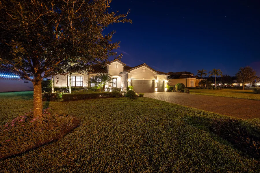 Welcome to your dream home in The Place at Corkscrew! This stunning Pulte Clubview model boasts 3,077 square feet of luxurious living space, offering four bedrooms, three full baths, a den, a bourbon and wine flex room, and a climate-controlled three-car garage with epoxy flooring. On a serene oversized lakefront lot, this spacious single-story residence features an open-concept floor plan with 12-foot coffered ceilings, creating a grand and inviting atmosphere. Step inside and discover the gourmet kitchen, designed for entertaining, with an oversized island, white quartz countertops, stainless KitchenAid appliances, a built-in dry bar with a beverage refrigerator, 42-inch white cabinetry with soft-close features, and a stylish custom backsplash. The zero-corner sliding glass doors seamlessly open to an expansive lanai, where you'll find a custom outdoor kitchen, large saltwater pool and spa with sun shelf, and panoramic screen enclosure. Enjoy breathtaking lake views and Florida's stunning sunsets from this peaceful outdoor oasis. The spacious owner's suite is a private retreat featuring tray ceilings and two customized walk-in closets. The en-suite bath offers a super walk-in shower, garden tub and dual vanities. Additional highlights of this home include new carpeting in bedrooms, tongue and groove ceiling woodwork, roll-down hurricane screens on the rear lanai and front door, plantation shutters, a home solar power system for low electric bills, LED landscape lighting, autofill for pool, colored LED pool lights, a whole home water filtration system and an oversized driveway for ample parking. The Place at Corkscrew offers unmatched resort-style amenities, including a 100-foot water slide, resort pool with waterfalls, splash pad and spa. Dine at the on-site restaurant, bourbon bar or café, or enjoy weekly food truck nights. The community also features a state-of-the-art fitness center, movement studio, covered playground, child watch center, dog park, and sports courts for tennis, pickleball, bocce ball and basketball. With guard-gated security and low HOA fees this property combines luxury, comfort and convenience. Don't miss this rare opportunity to own an exceptional home in one of Southwest Florida's sought-after communities. Schedule your private showing today and make this waterfront paradise your own.