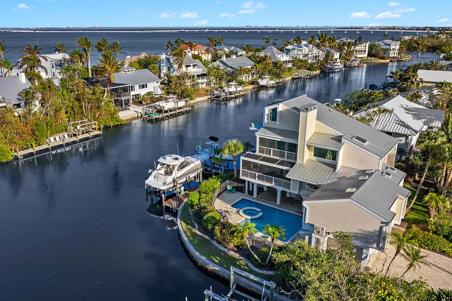 There are a few once-in-a-generation locations, and this is one. At end of prestigious Bay Drive is a hidden harbor, home to a stunning boat basin and an amazing direct access canal. Extending into this idyllic setting is a peninsula of sea walled land hosting this awe-inspiring residence. With water views usually only enjoyed from the bridge of a yacht, this completely remodeled home offers subtle sophistication complementing the incredible views. Walls of windows and impact sliders host views few are fortunate enough to enjoy. Stunning 24-inch tile floors and wood-inlaid ceilings offer touches of luxury and hints of what the rest of the residence has to offer. Walnut cabinets and Cristello counters adorn the gorgeous kitchen open to the living and dining areas where water views abound. Your outdoor kitchen on a large lanai overlooks the boat basin, your pool and spa an amazing private dock featuring both a 26,000-pound and 16,000-pound lift for boat enthusiasts. Venture up to the primary suite where a gas fireplace and seating area greet you and a staircase takes you to a reading loft where bay and basin views are extraordinary. This home and location are spectacular.