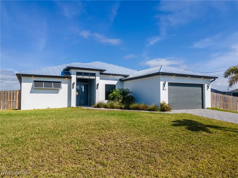 Luxury, Space, and Unmatched Upgrades – Your Dream Florida Home Awaits! Welcome to this exceptional, better-than-new 4-bedroom, 3-bathroom masterpiece, built in 2023 and set on a rare triple lot for ultimate space and privacy. Every detail of this home has been thoughtfully upgraded, blending modern elegance with state-of-the-art technology to deliver an unparalleled living experience. Step inside to soaring tray ceilings, sleek tile floors, and high-end finishes throughout. The gourmet kitchen boasts quartz countertops, soft-close cabinets, and upgraded appliances, including a cutting-edge refrigerator with a built-in TV screen. The epoxy-finished garage, hurricane-impact windows and doors, and durable metal roof provide both beauty and security, while the whole-house reverse osmosis system ensures premium water quality. Indulge in the spa-like luxury of all three bathrooms, each featuring an opulent shower tower, or unwind in the expansive primary suite with a massive walk-in closet. The custom built-in cabinets in the living room add both style and function. But the true showstopper? The outdoor oasis. Entertain effortlessly in the huge screened-in lanai, complete with a summer kitchen and outdoor shower. Relax in the resort-style saltwater pool, complete with a fountain and ledge lounger, perfect for soaking up the Florida sun. Nestled on a quiet street in a prime location, this home is the epitome of luxury, comfort, and convenience. Don't miss this rare opportunity—move in and start living the Florida dream today!